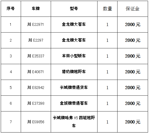 四、凡有意競買者請于2019年1月21日17:00以前將保證金匯入我公司指定賬戶(保證金以到賬為準(zhǔn)),并持匯款依據(jù)及有效證件到我公司辦理競買手續(xù)和開通網(wǎng)絡(luò)競買權(quán)限。(戶名:瀘州市四方拍賣有限公司,賬號:51001637708051501502 開戶行:建行瀘州世紀(jì)城支行)。